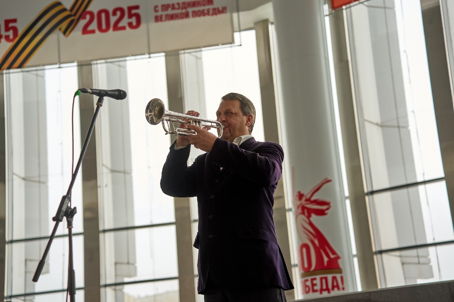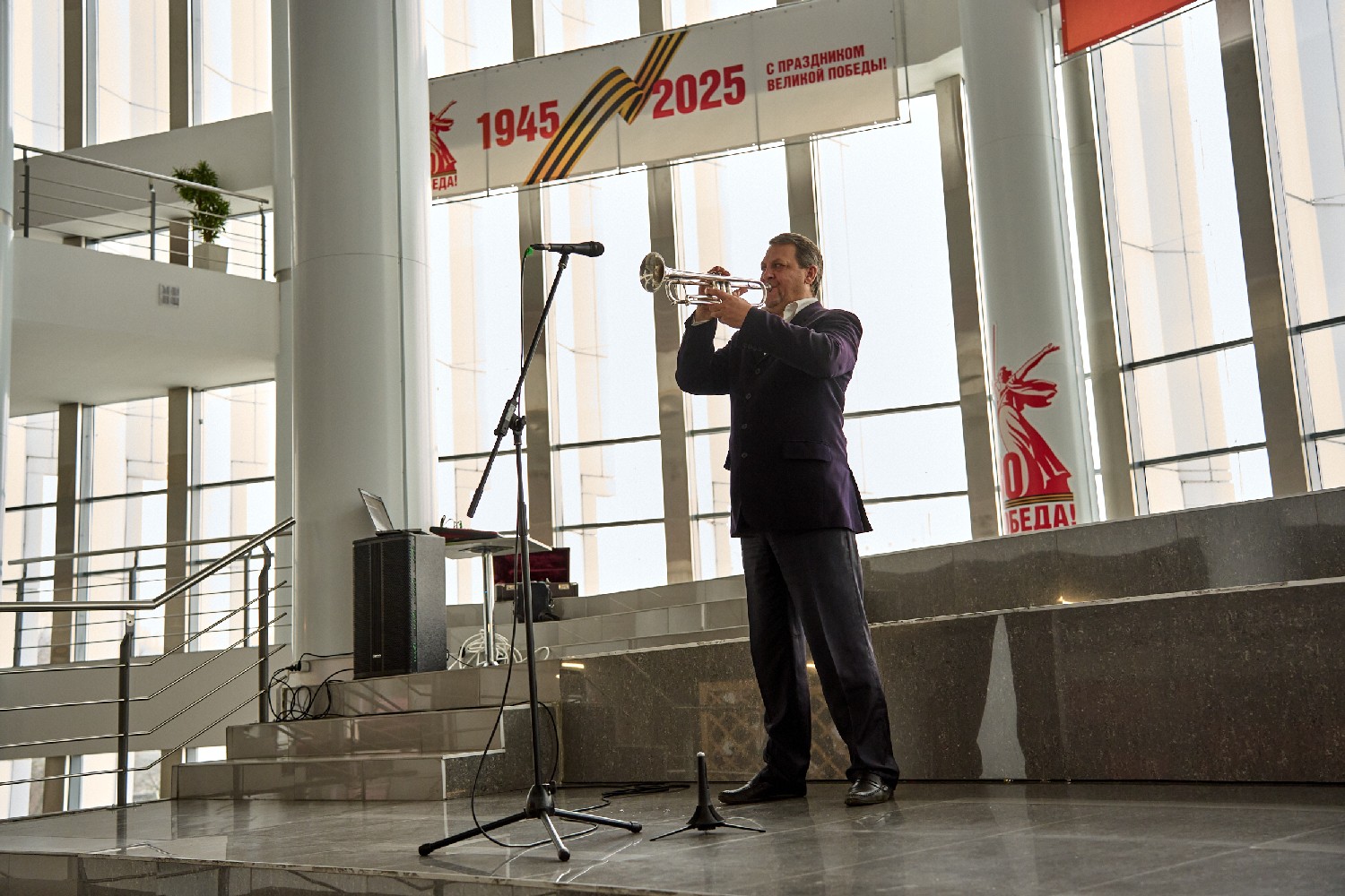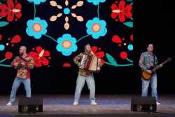 В фойе зрителей с программой «Добро пожаловать!» встречал артист ансамбля песни и танца «Казачья застава» Александр Мереняшев (труба).
