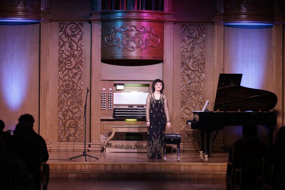 В исполнении артистки прозвучали шедевры двух композиторов: классика Иоганна Себастьяна Баха и киномузыка Микаэла Таривердиева.