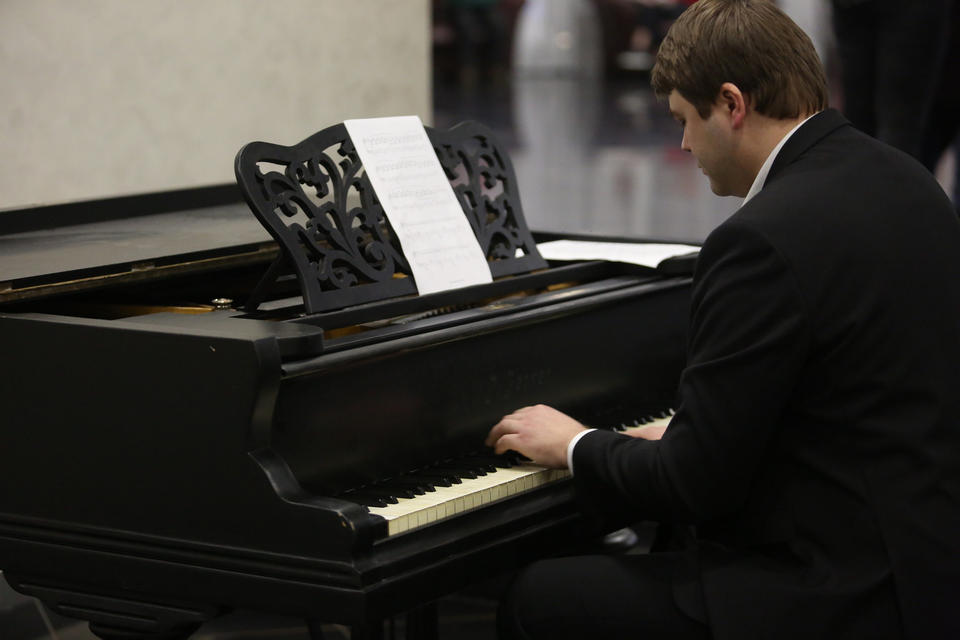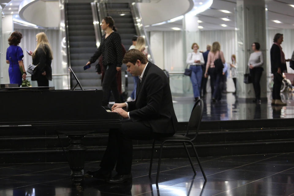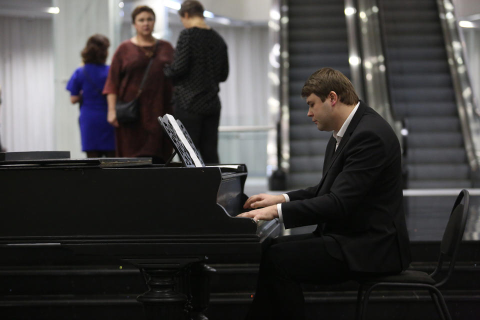 Перед началом концерта в фойе гостей вечера музыкальной программой встречал солист «Пензаконцерта» Александр Губарьков (фортепиано).