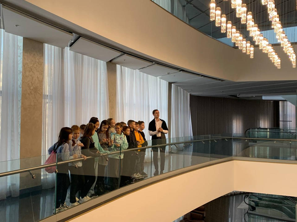 Ребята побывали в концертных залах, узнали интересные факты об архитектурных особенностях здания, его внутренней отделки и технического оснащения, а также увидели репетицию ансамбля песни и танца «Казачья застава» на сцене Большого зала.