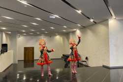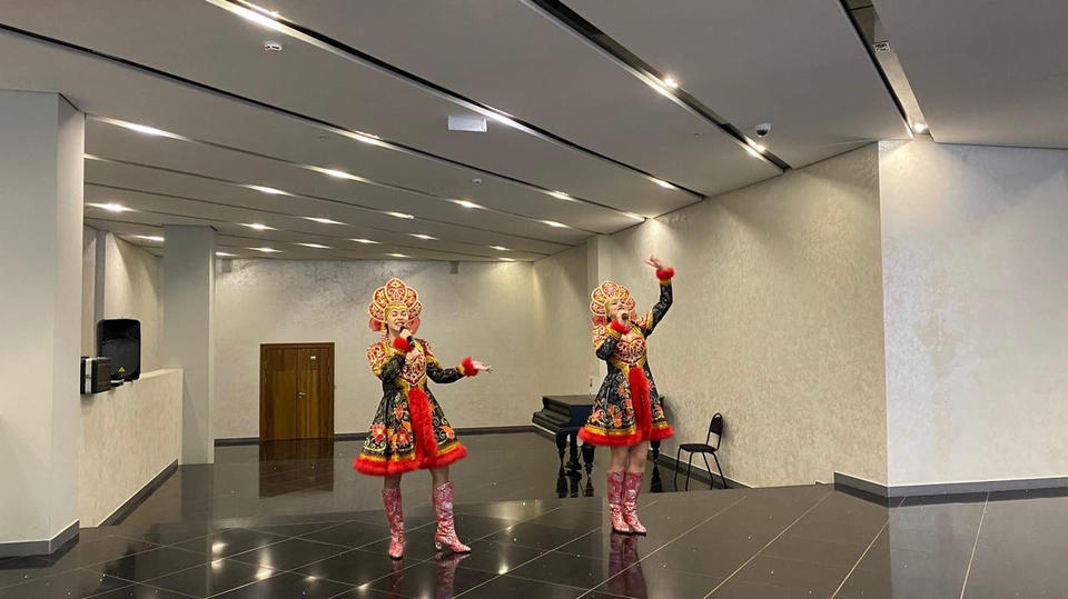 А в фойе филармонии юных зрителей и их родителей с программой «Весёлые нотки» встречали артисты ансамбля «Злато-Серебро».