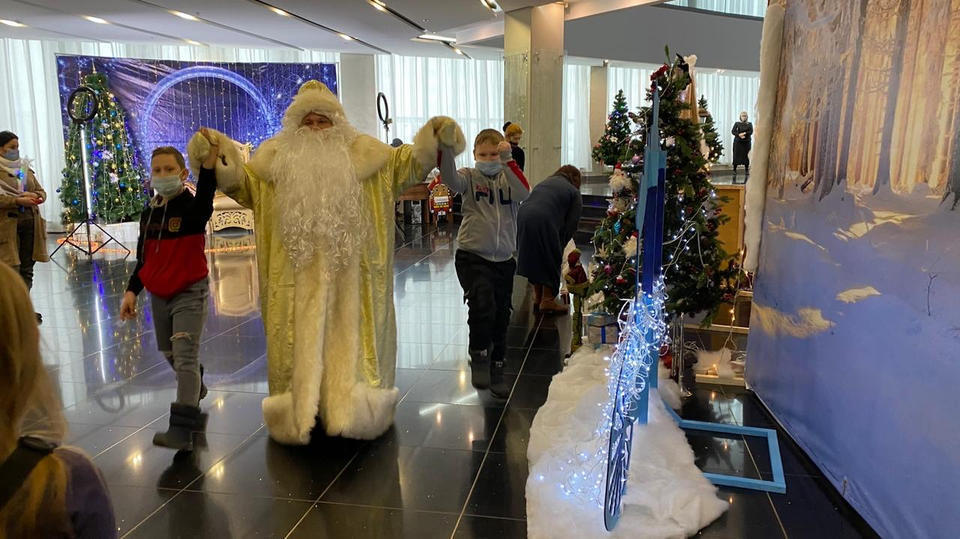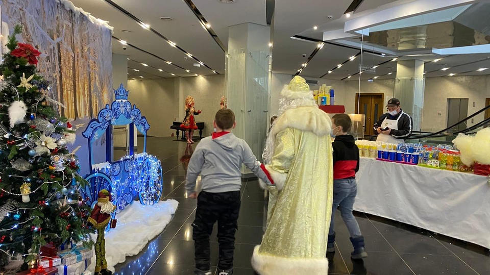 Перед спектаклем с Новым Годом зрителей поздравили Дед Мороз и Снегурочка.