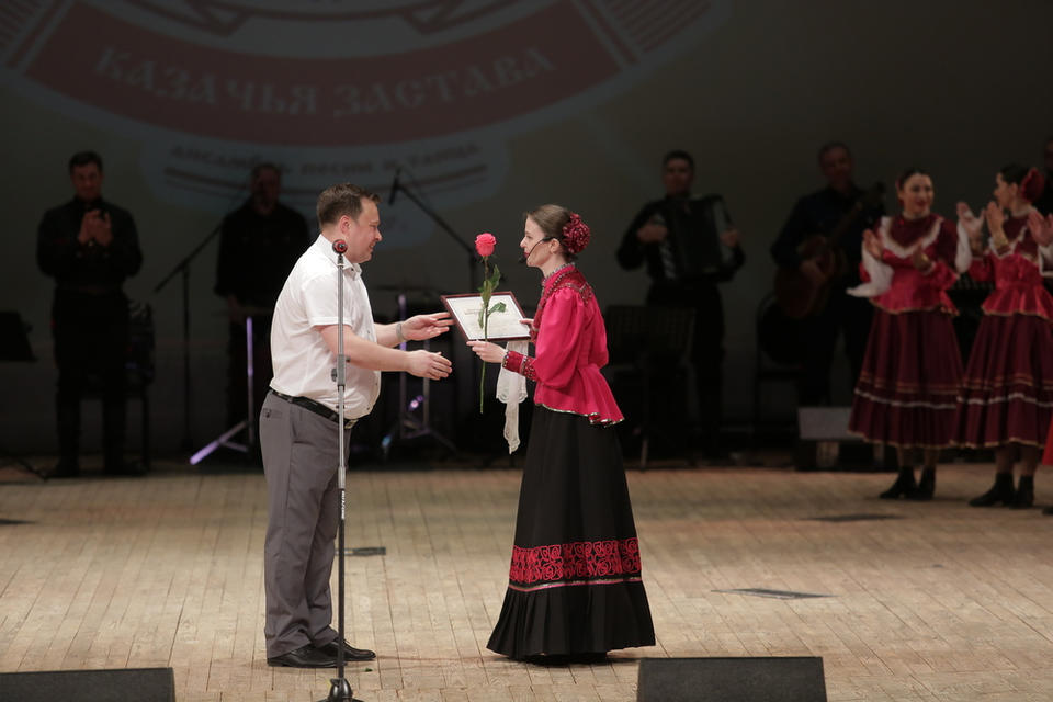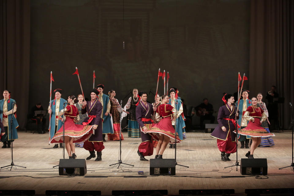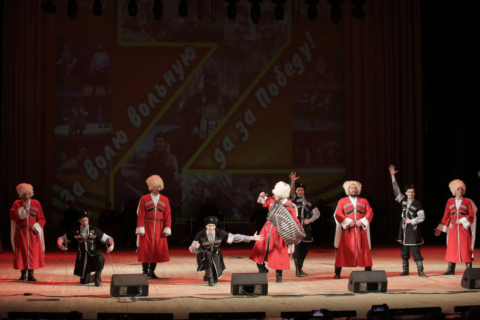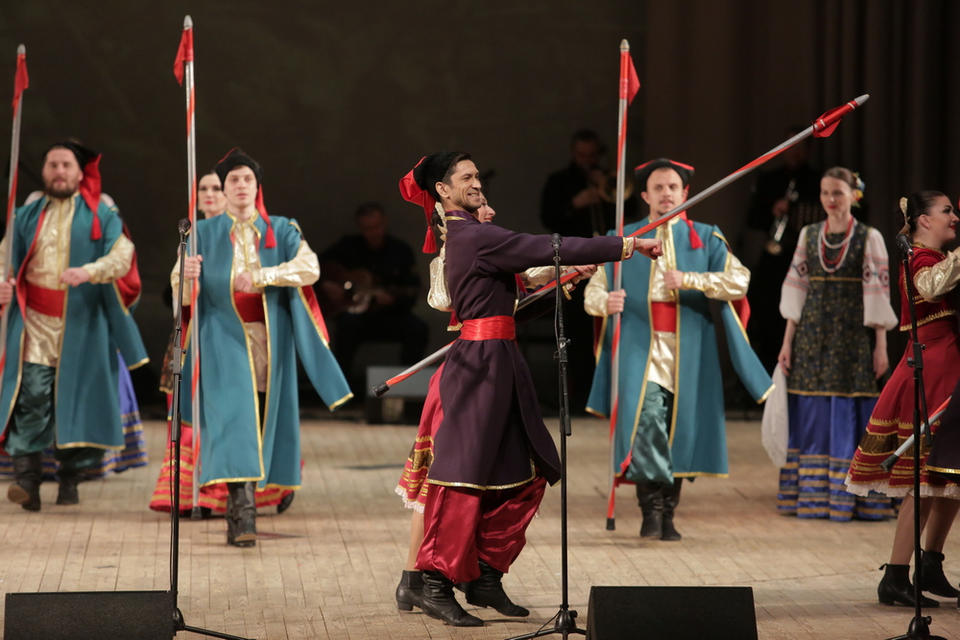 В субботу, 29 апреля, в Большом зале филармонии выступил ансамбль песни и танца «Казачья застава» с новой программой «За волю вольную да за Победу!».