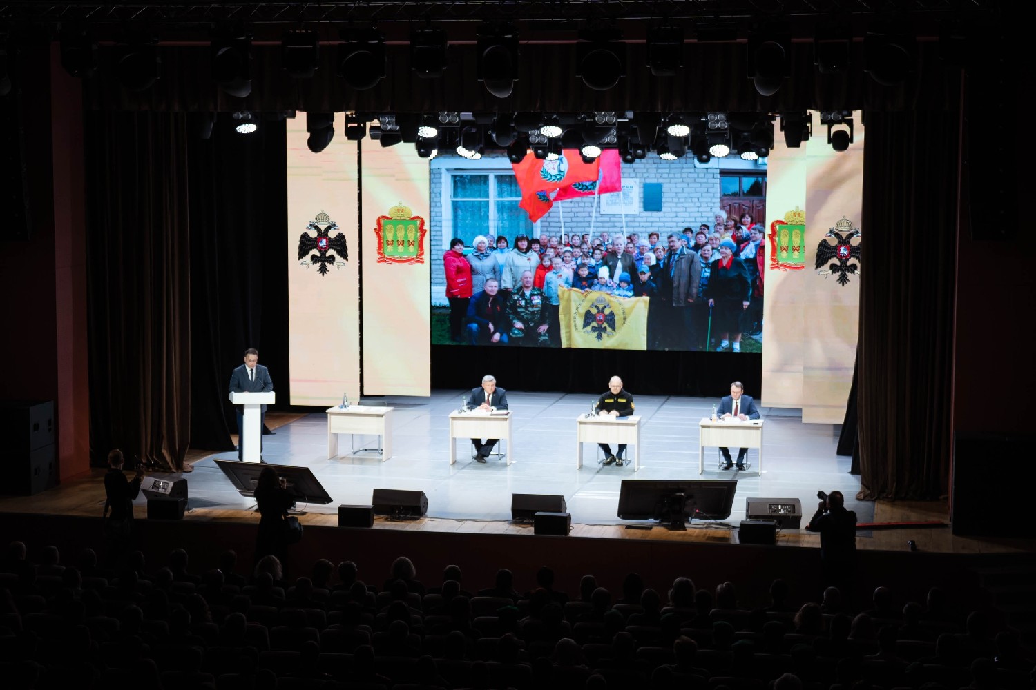 В рамках открытия собрания гимн России исполнил академический хор Губернаторской симфонической капеллы п/у Вячеслава Филиппенкова (хормейстер — Руслан Проскуряков).