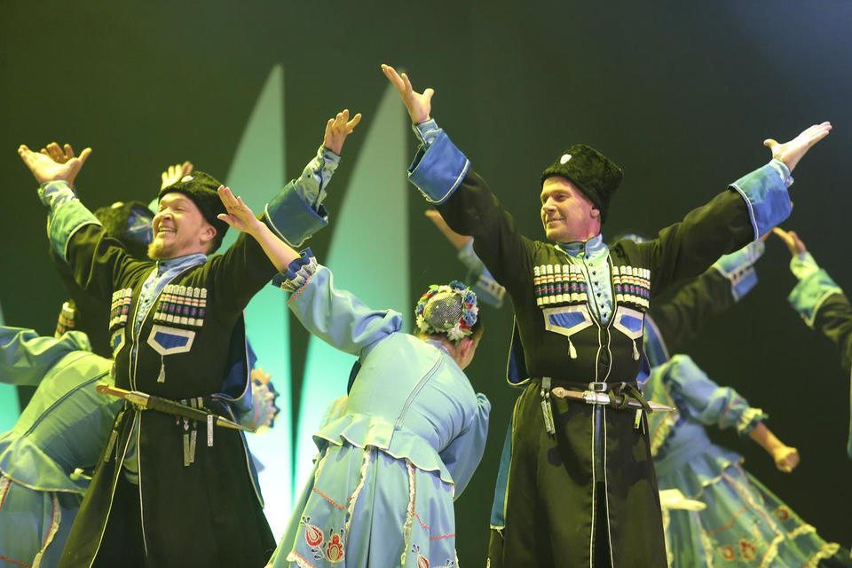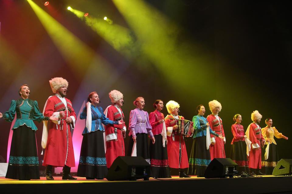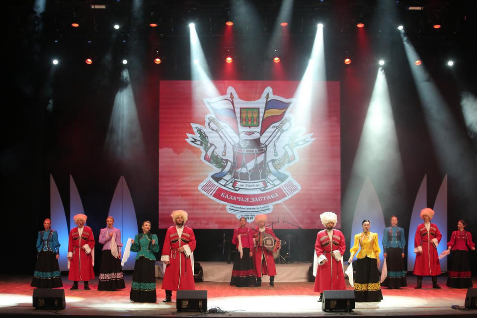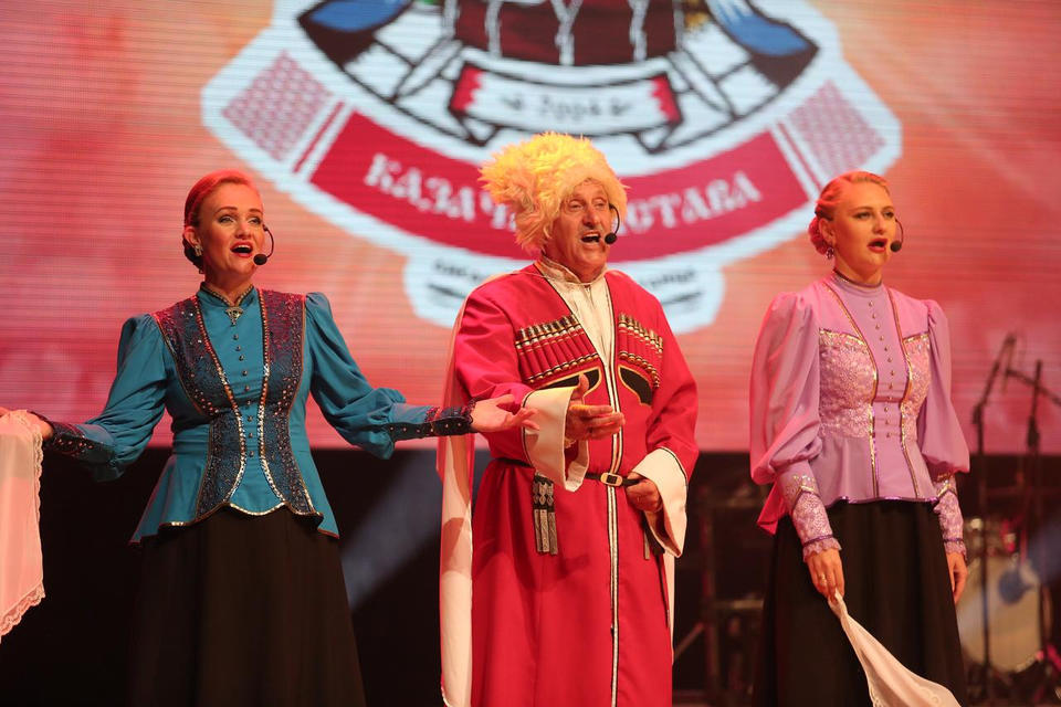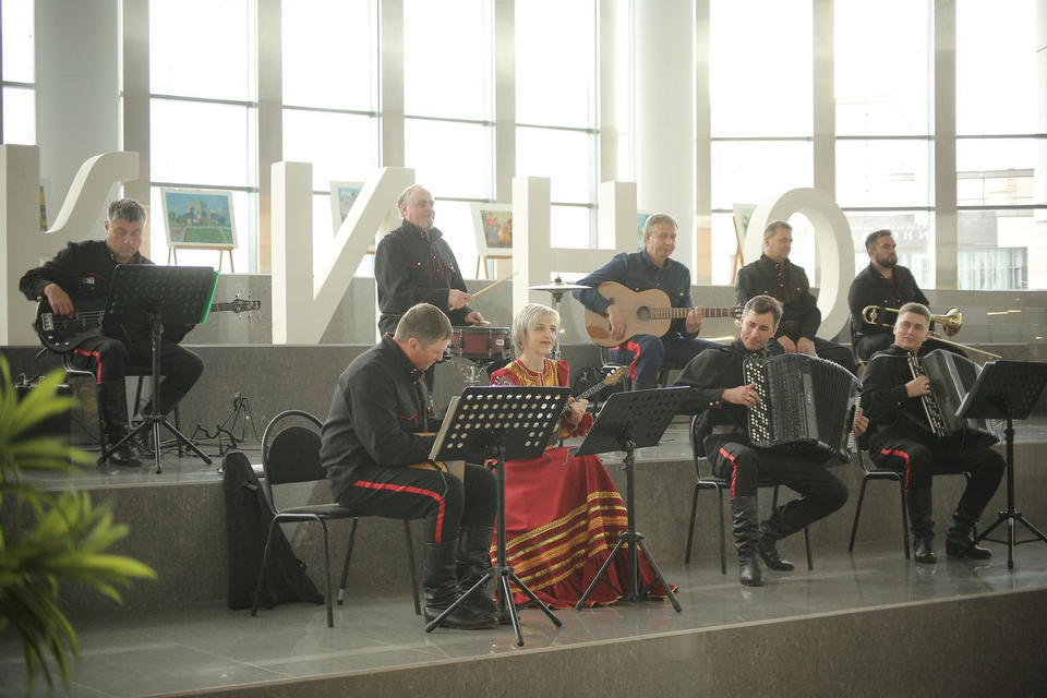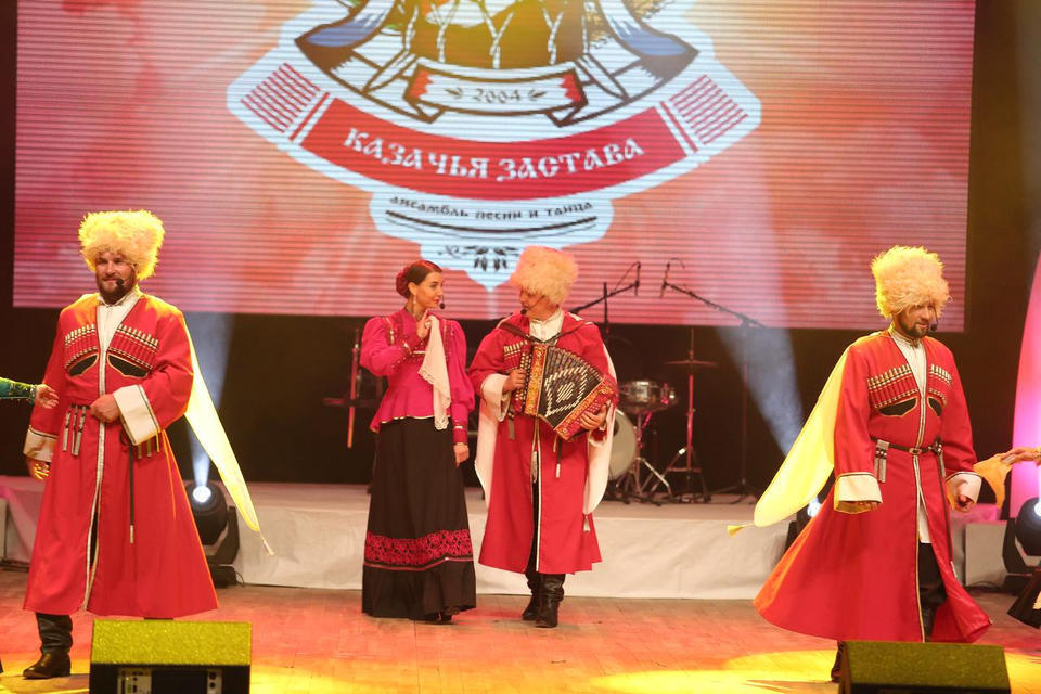 Перед концертом публику с программой «Добро пожаловать!» встречали музыканты оркестра ансамбля «Казачья застава».