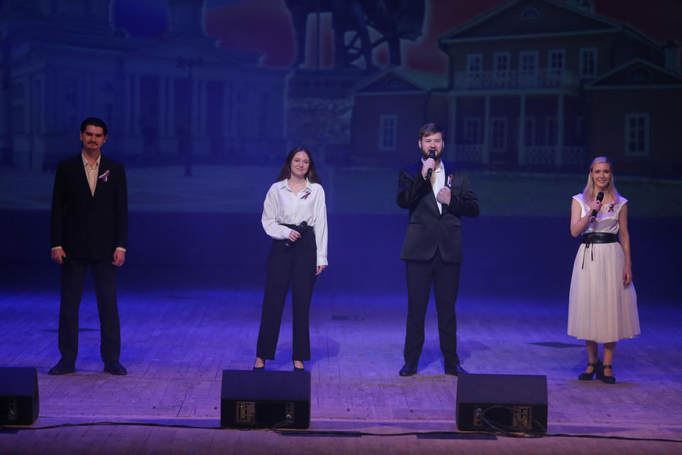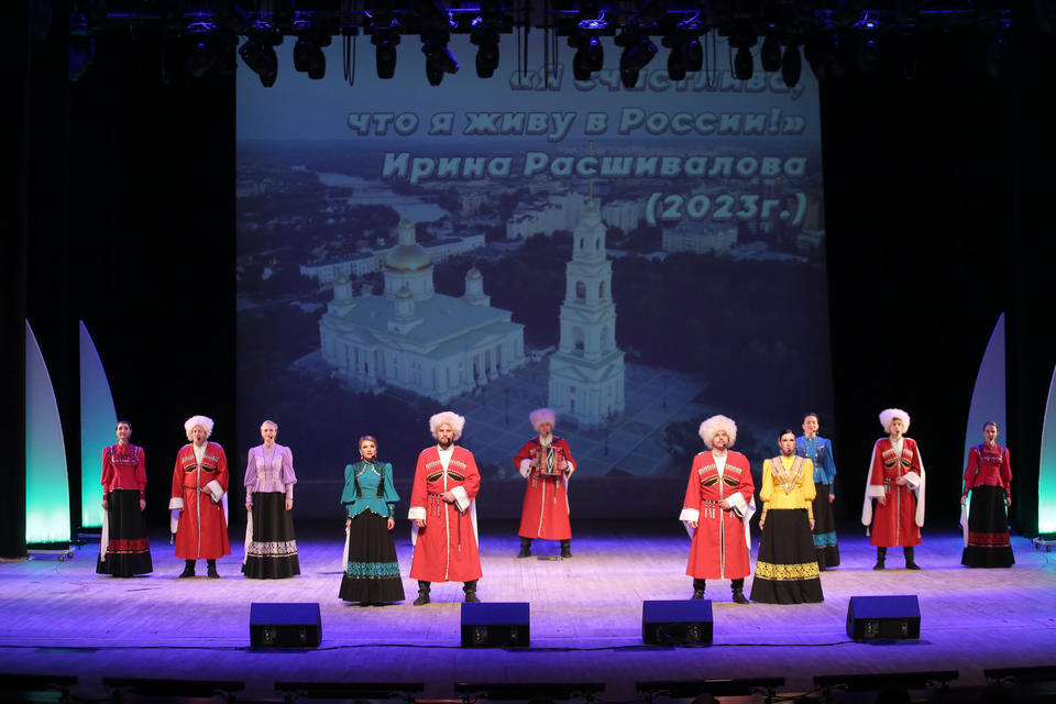 Стихотворением поэтессы Ирины Расшиваловой «Я счастлива, что я живу в России» (2023) в исполнении артистов группы «Калейдоскоп» открылась праздничная концертная программа.