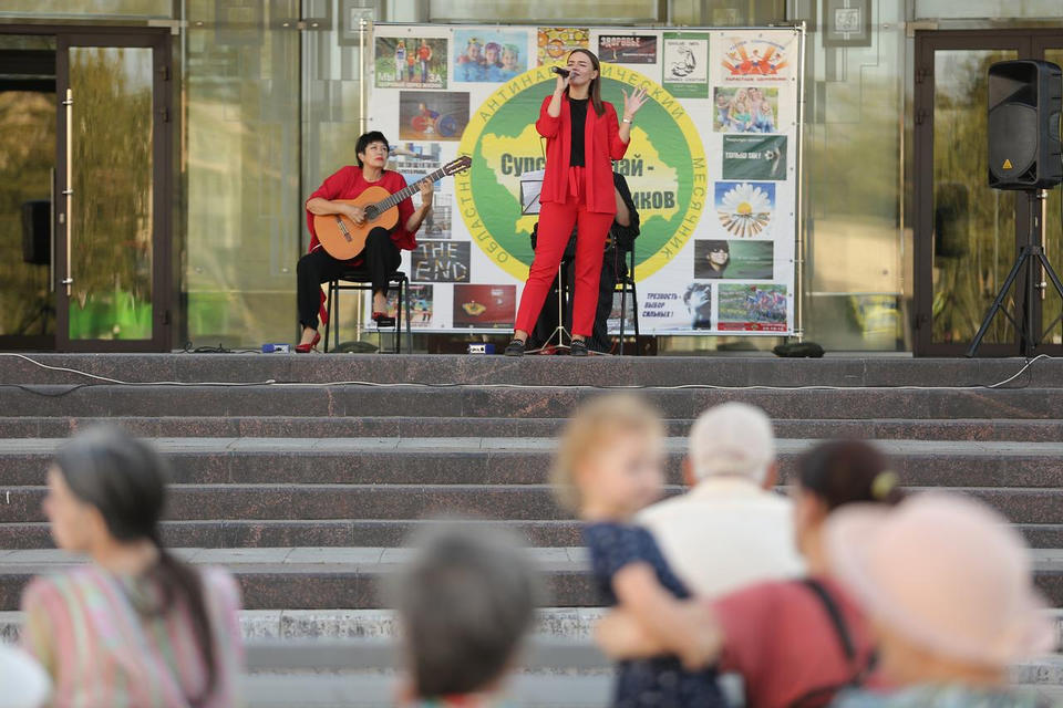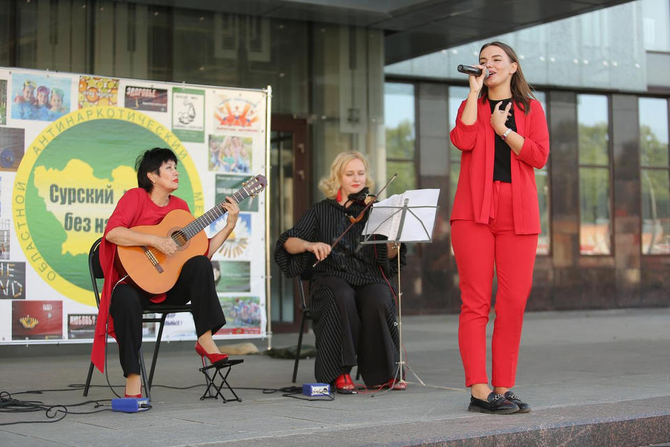 На площади возле центрального входа в здание филармонии программу «Музыка против наркотиков» представил творческий коллектив «Экспромт».