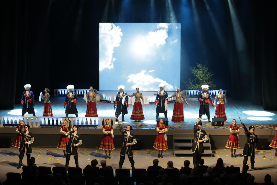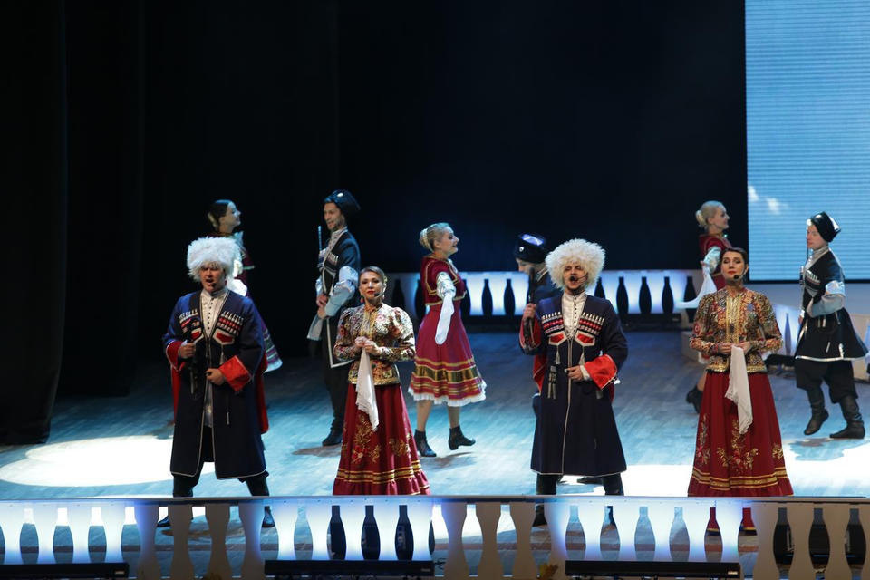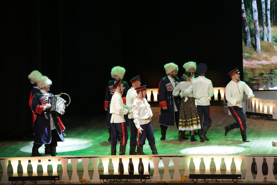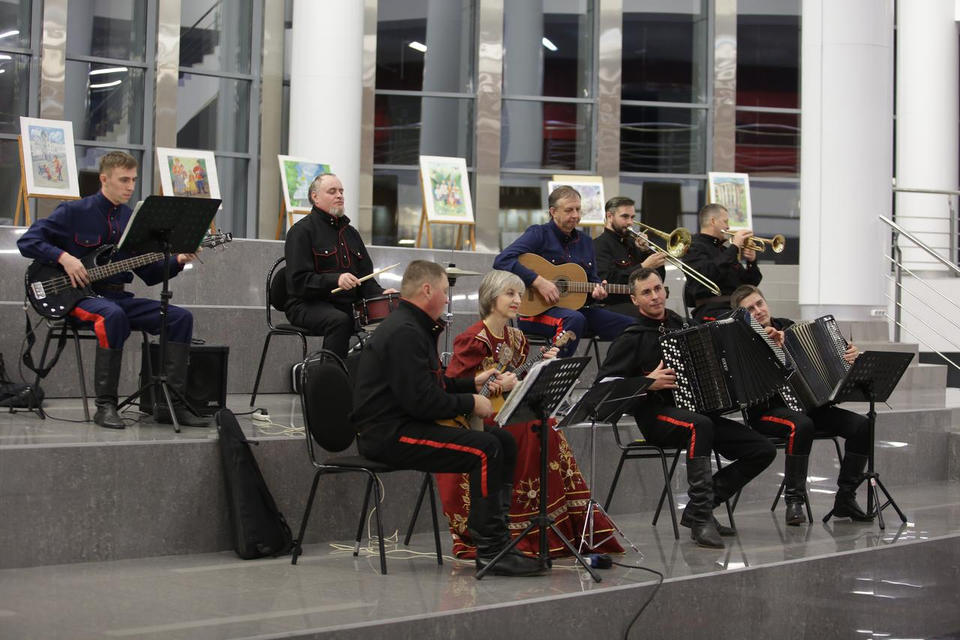 А перед концертом зрителей с программой «Добро пожаловать!» встречал оркестр ансамбля песни и танца «Казачья застава».