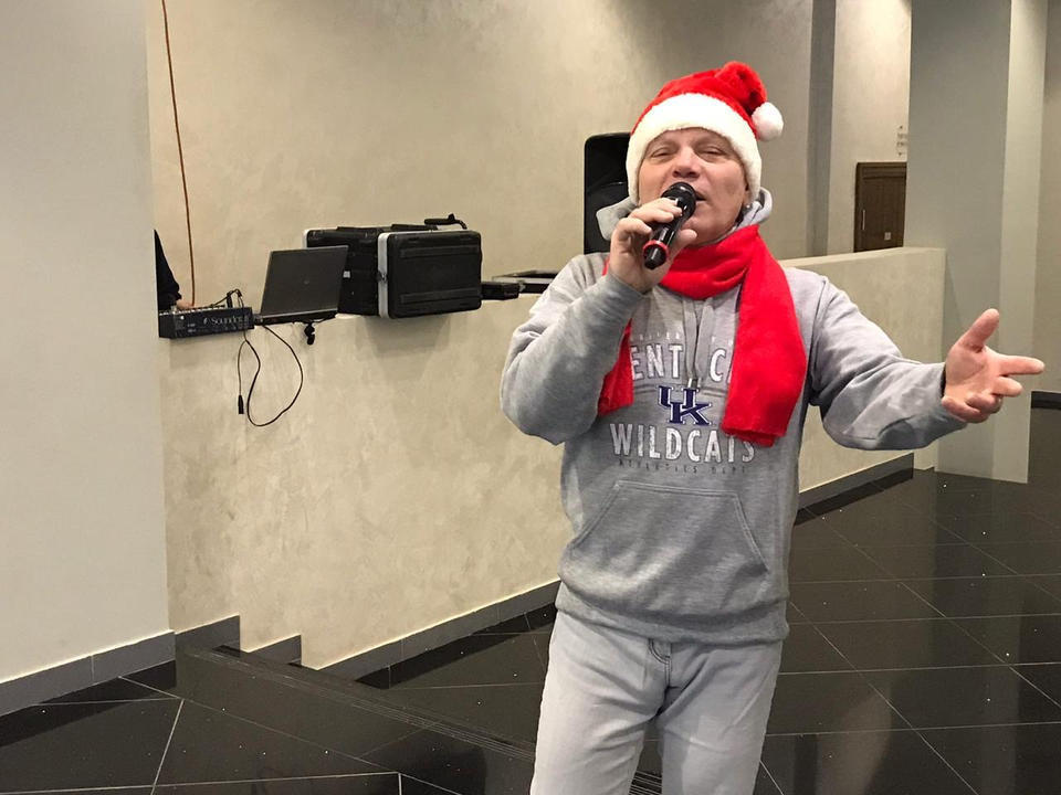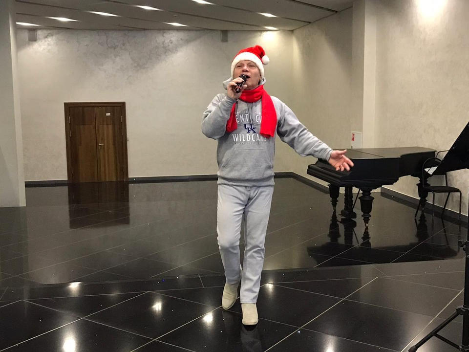 В фойе филармонии юных зрителей и их родителей с программой «Весёлые нотки» встречал солист эстрадно-джазового ансамбля «Экспресс-бэнд» Александр Ренуар.