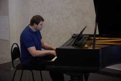 В фойе филармонии гостей гала-концерта с музыкальной программой встречал пианист «Пензаконцерта» Александр Губарьков.