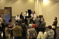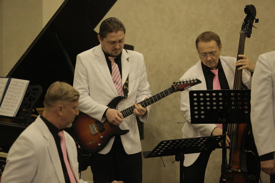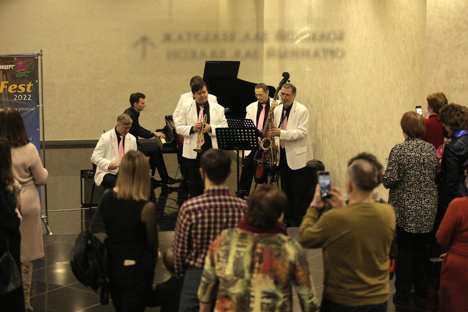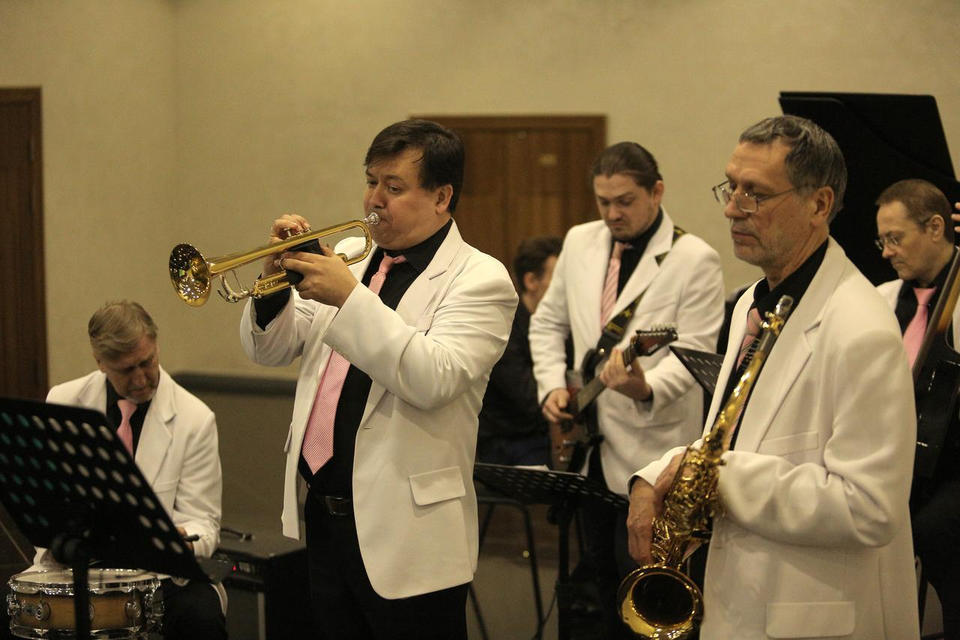 Перед концертом зрителей с программой «Добро пожаловать!» встречали музыканты эстрадно-джазового ансамбля «Экспресс-бэнд» п/у Юрия Белоногова.