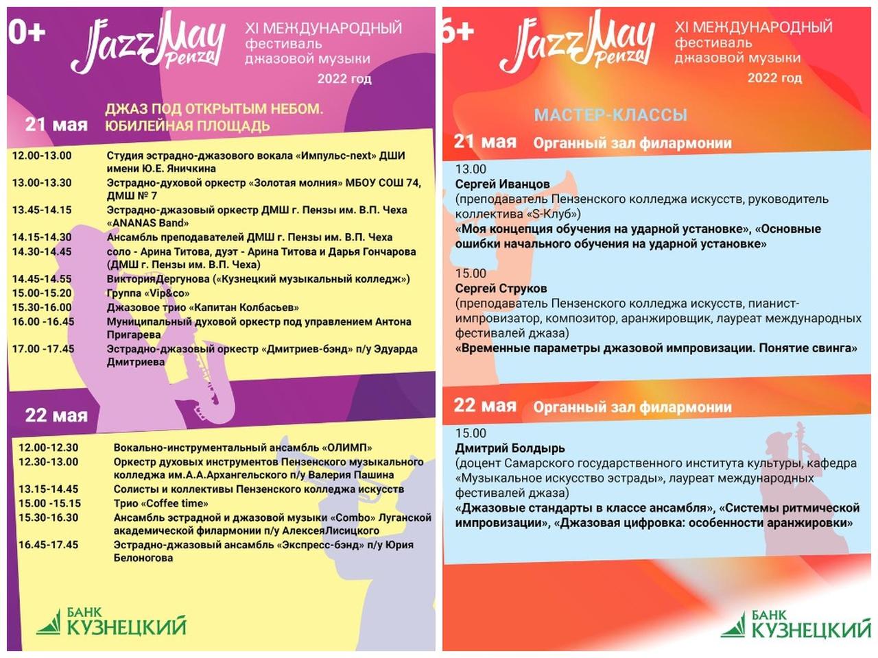 Главное культурное событие весны – XI Международный фестиваль «Jazz May Penza - 2022» – состоится в Пензенской области 21-22 мая и вновь соберёт на площадках «Пензаконцерта» ведущие джазовые коллективы России!